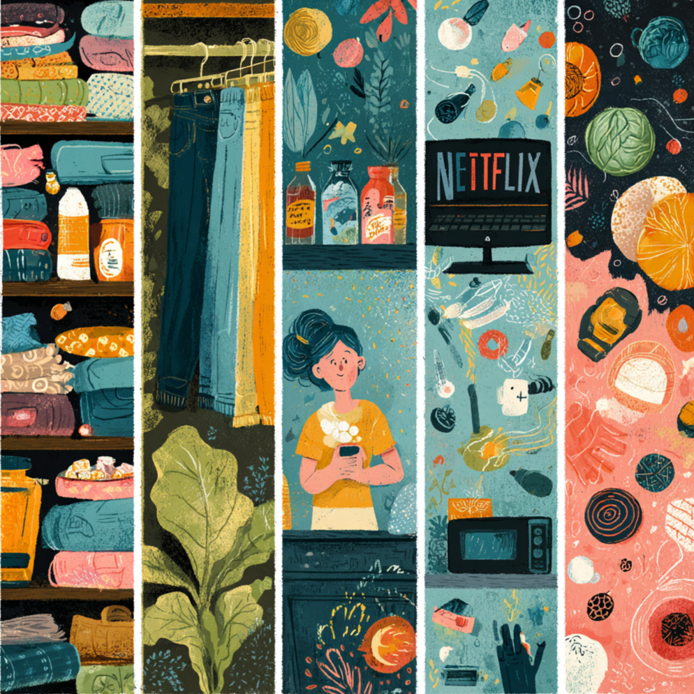 And it’s not just food. This same showdown happens everywhere at home: the closet, the pantry, the Netflix menu. Too much choice sounds like abundance, but when it’s stacked up against an already exhausted brain, it feels like chaos.