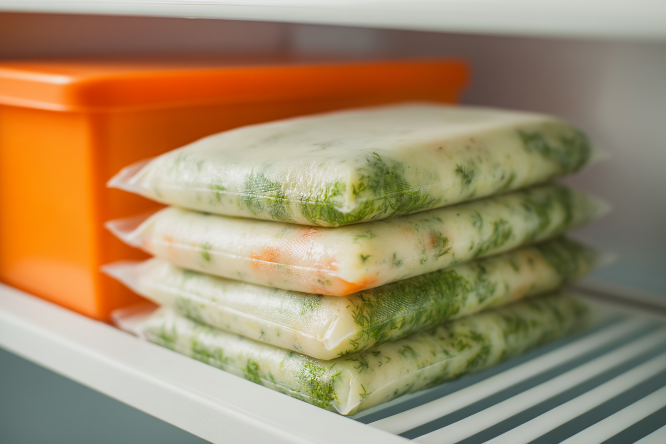 Blend herbs with a splash of oil to make a paste, then spread it flat in a freezer bag. Once frozen, break off chunks as needed. It’s like having fresh herbs on demand, without the ticking clock of fridge decay.