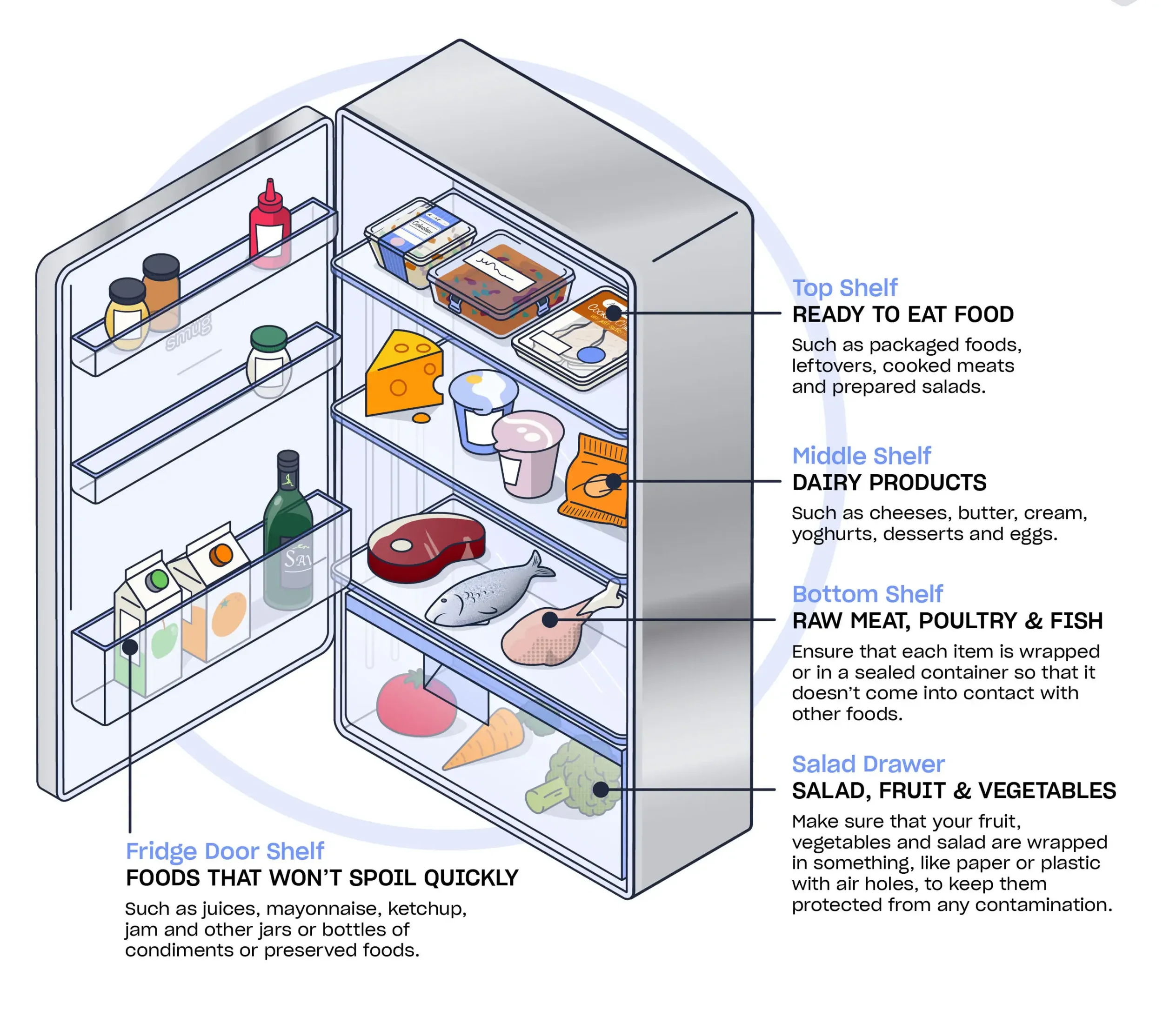 (ketchup, salad dressing, soy sauce)Bottom Shelf: Heavy & awkward